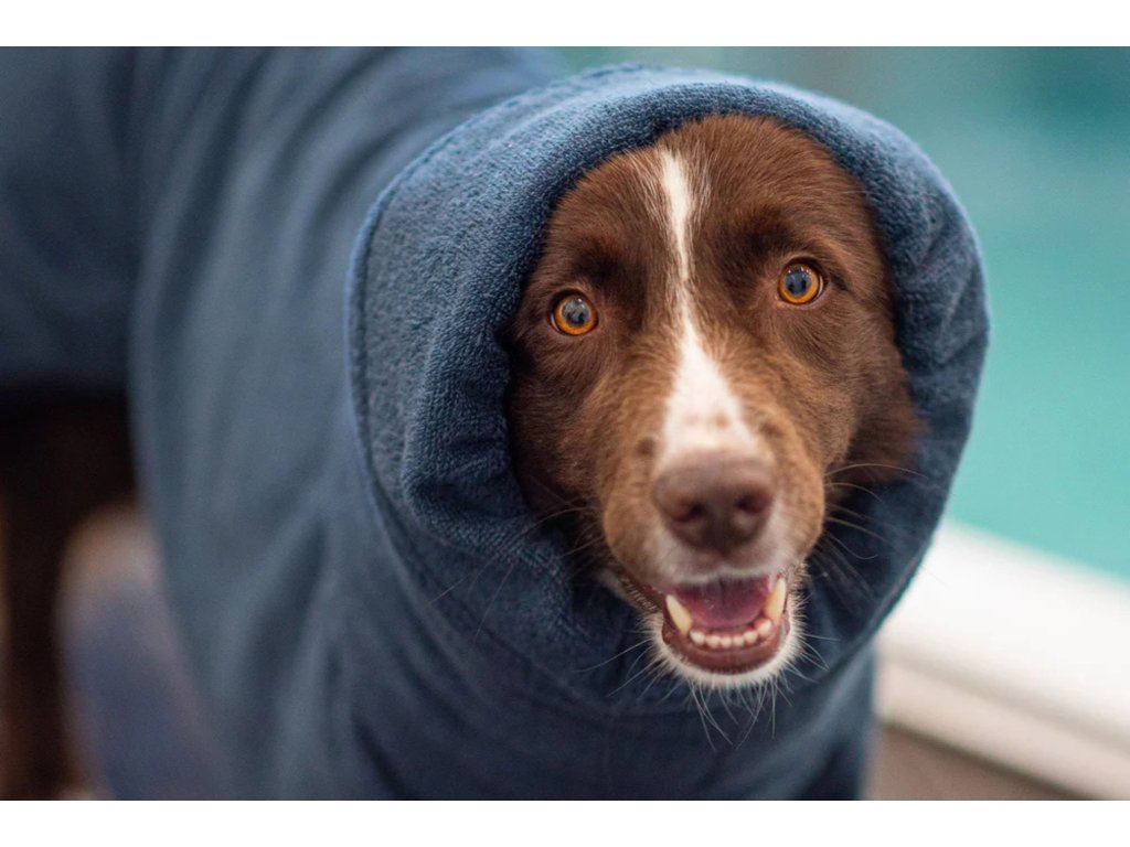 BathPomppa je vysoko savý a výborne krycí župan, ktorý urýchli osušenie vášho psa po plávaní, kúpaní alebo po daždivých prechádzkach.