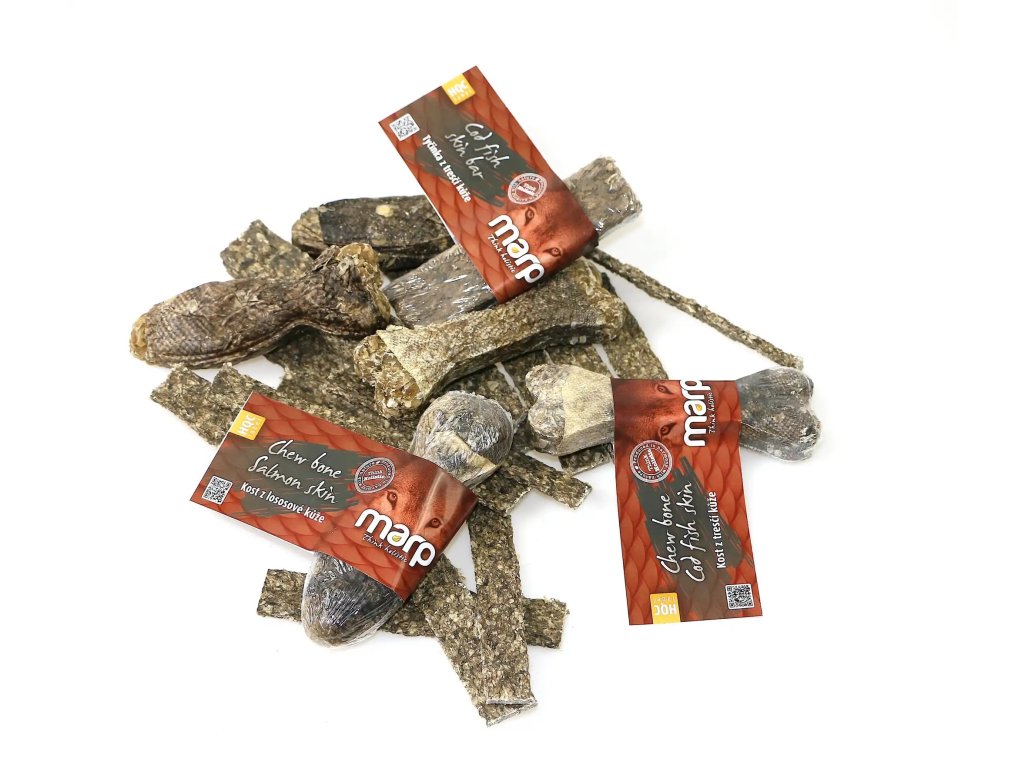 Marp Holistic Prúžky z tresčej kože sú ručne vyrábané maškrty pre psov bez umelých konzervantov, ktorých zloženie je 100% koža z tresky. Balenie obsahuje 10 kusov prúžkov.