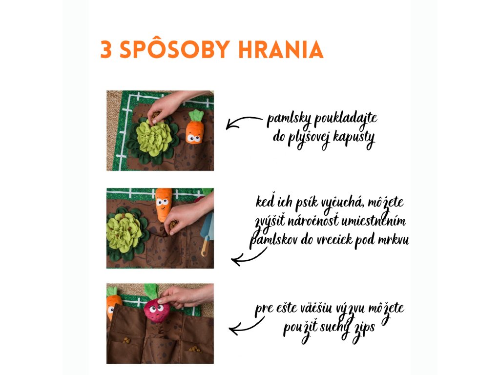 Psík si môže vyhrabať mrkvičku alebo prečuchať šalát a nájsť v nich jeho obľúbené maškrty. Túto záhradku na čuchanie a hľadanie bude mať len pre seba. :)