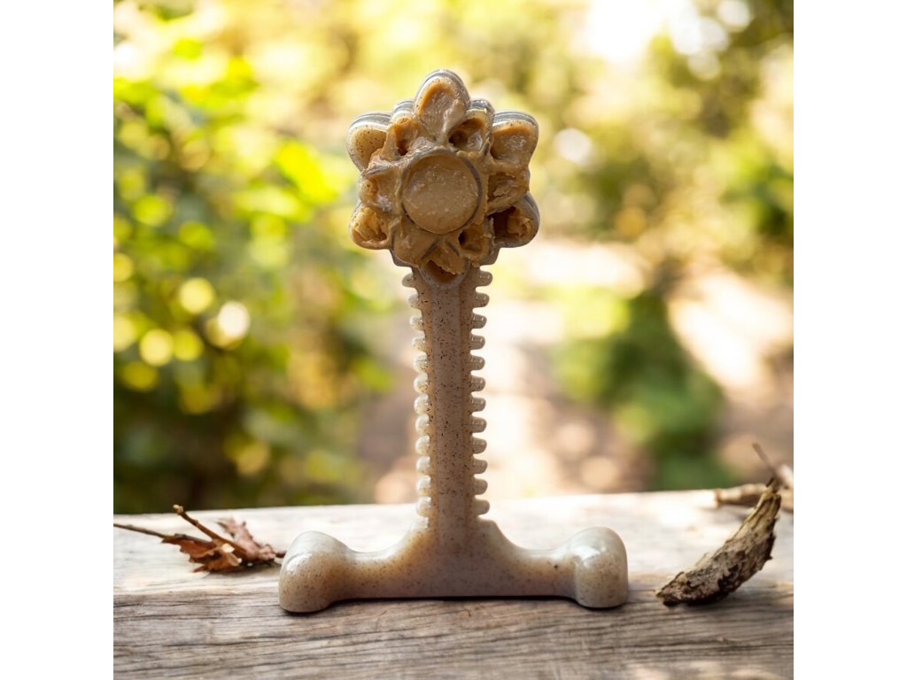 SodaPup Honey Bone Dental Flower Tower, super odolná nylonová žuvacia hračka - hnedá XL