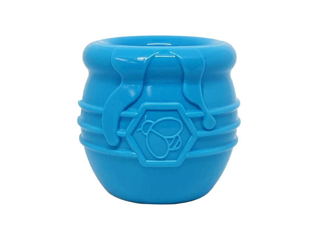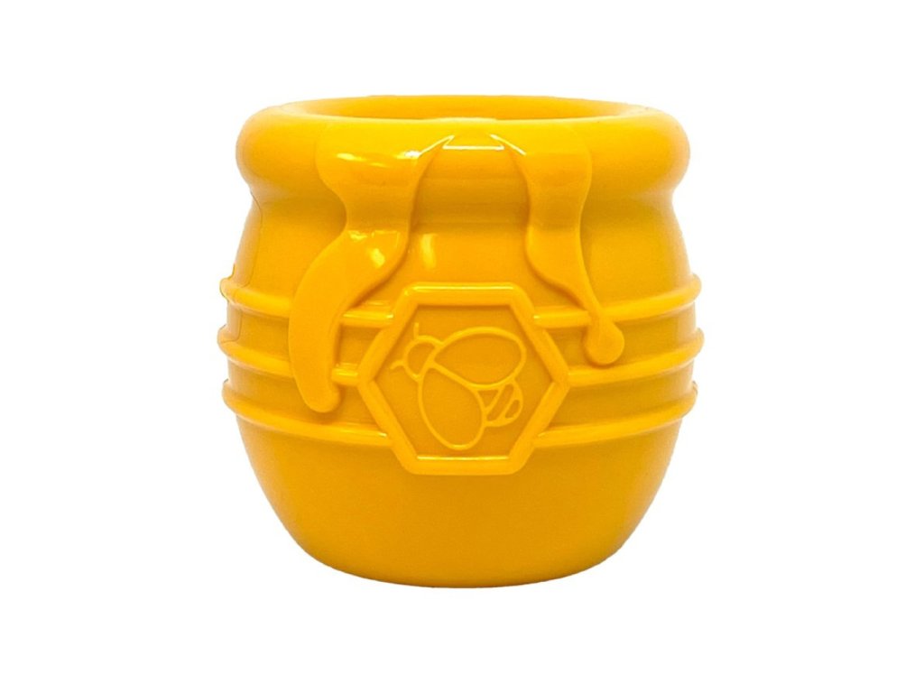 Odolná plniaca hračka s originálnym dizajnom v tvare Honeypot - pohára na med, je vyrobená zo zdravotne nezávadnej prírodnej kaučukovej gumy potravinárskej kvality POP-X, ktorá sa vyznačuje vynikajúcou odolnosťou, žiarivosťou farieb a dokonca pláva.